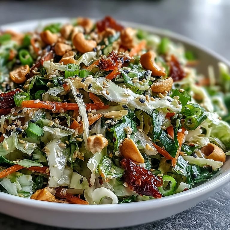Pin It The smell of toasted sesame oil hit me the moment I opened the bottle, and I knew this salad was going to be different from the usual leafy greens I'd been making all week. I was standing in my kitchen on a warm Thursday evening, staring at half a cabbage I'd bought on a whim, wondering what to do with it. A friend had mentioned an Asian cabbage salad she'd had at a potluck, describing it as 'crunchy, tangy, and addictive,' which was all the inspiration I needed. I grabbed my sharpest knife and started slicing, letting the rhythmic sound of the blade against the cutting board calm my cluttered mind. By the time I tossed everything together, I realized I'd stumbled onto something I'd be making on repeat.