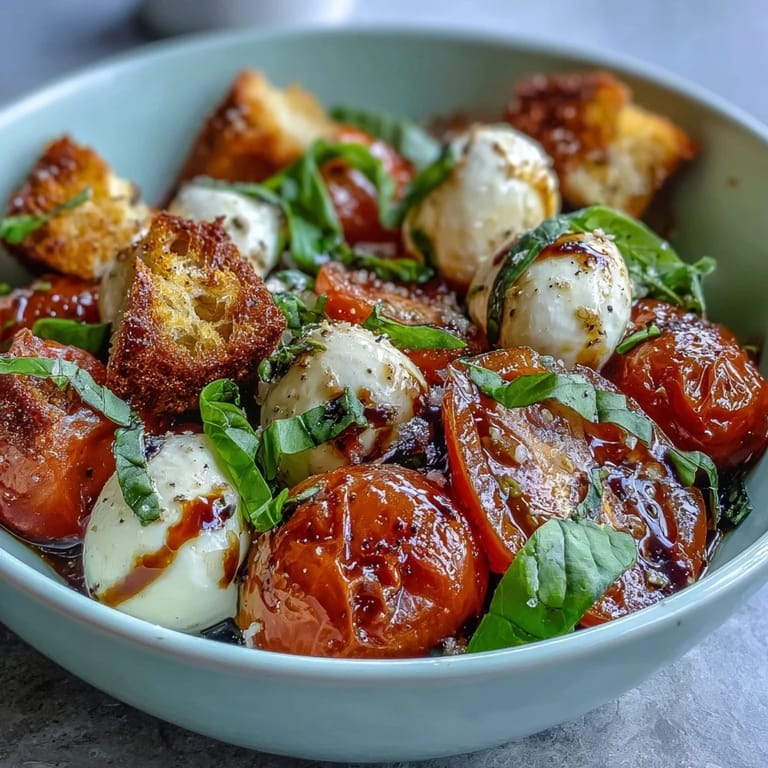 I made this for a dinner party once where someone mentioned they'd been vegetarian for two weeks and weren't sure they'd miss much. By the end of the meal, they were eating a second bowl and asking about the mozzarella brand—that's when I knew this salad had real power. The combination of textures, the way the balsamic and olive oil pool at the bottom, the warmth of the bread against everything cool and fresh—it all matters in a way that feels almost simple until you taste it.