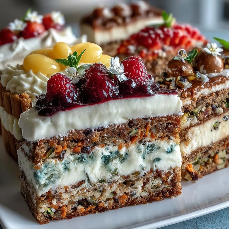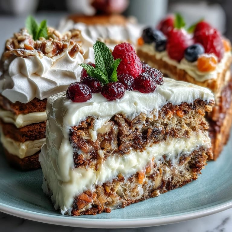 Pin It The kitchen felt unusually lively that morning as I planned the Easter dessert table: carrot cake, pavlova, and lemon tart. I remember the sunlight pooling across my workbench, catching the colors of grated carrots and glossy berries waiting their turn. It wasn’t tradition but whim that made me choose this trio, their contrasting textures promising a playful bite for every guest. A certain spring air—slightly sweet, slightly tart—seemed to drift around as I sifted flour and zested lemons. I found myself humming absentmindedly, relishing the anticipation of an abundant table.