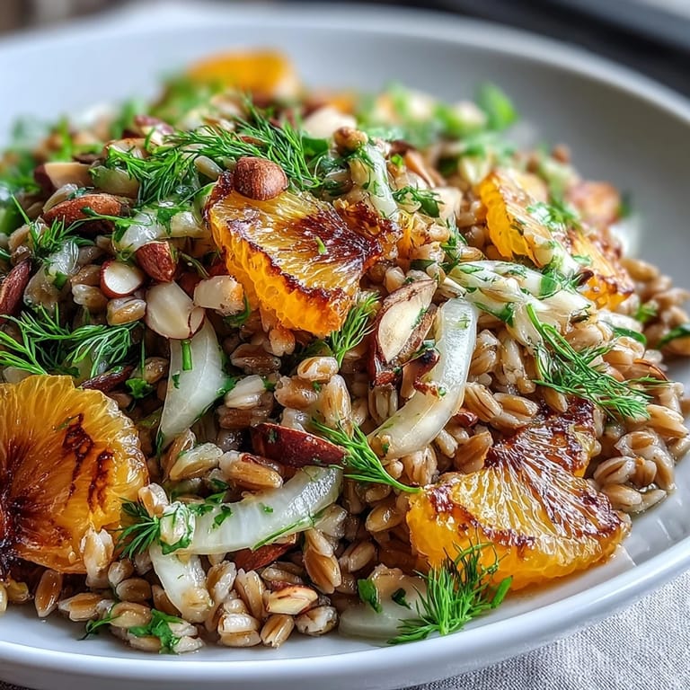 Pin It There's something about a bowl of farro that makes you slow down. I was standing in my kitchen on a quiet Tuesday afternoon, watching the grain tumble in boiling water, when my neighbor stopped by with a bag of just-picked oranges from her tree. Within minutes, I'd tossed together this salad, and suddenly it became the kind of lunch that tastes like both comfort and brightness at once.