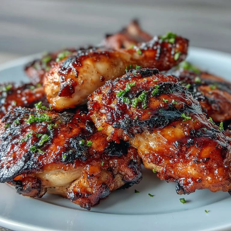 Pin It My neighbor showed up one summer evening with a bottle of something cold and a question: could I grill chicken that didn't taste like, well, grilled chicken? That's when I started playing with honey and garlic, finding the sweet spot where caramelization happens and sticky glaze clings to golden skin. The first batch was a revelation, and now it's what people request when they know I'm firing up the grill.