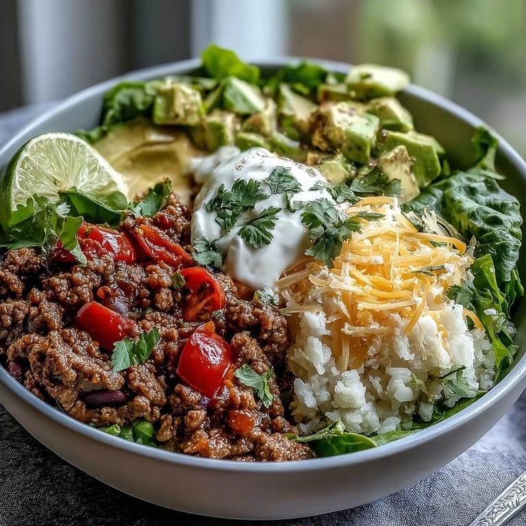 Ground turkey or chicken work perfectly if you want a leaner bowl, just add a touch more oil so it doesn't dry out. I've also used shredded cabbage instead of cauliflower rice for a crunchy, raw twist that adds fiber and a slight peppery bite. For dairy free eaters, coconut yogurt or a quick avocado crema (mashed avocado with lime juice and salt) replaces sour cream without losing that creamy contrast.