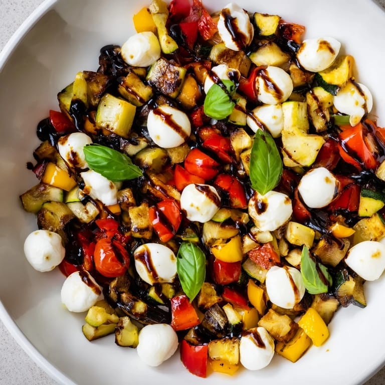 Pin It Summer dinners at my apartment usually mean I'm too warm to turn on the stove for long. One evening, I opened the fridge to find a jumble of bell peppers and zucchini I'd bought with good intentions but no real plan. I thought about Caprese salad, then wondered what would happen if I roasted everything first. The vegetables came out sweet and smoky, and when I tossed them with cool mozzarella and basil, it felt like I'd stumbled onto something that made the heat worth it.
